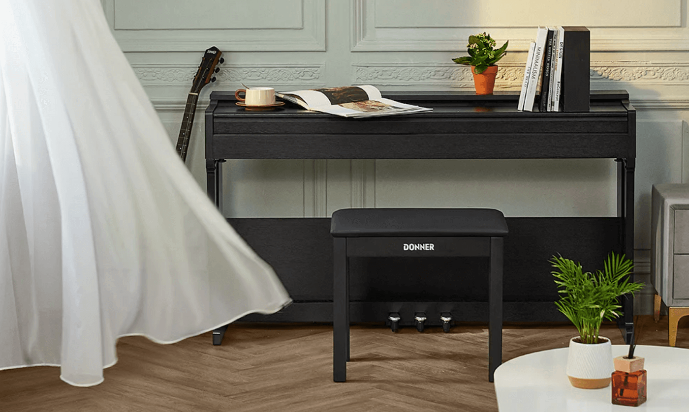 Donner cherche depuis quelques années à s’imposer sur le marché des pianos numériques avec des modèles meubles à prix serré. Le Donner DDP-90 s’inscrit clairement dans cette logique : un piano meuble compact, pensé pour les débutants qui veulent un vrai 88 touches lesté sans exploser le budget.